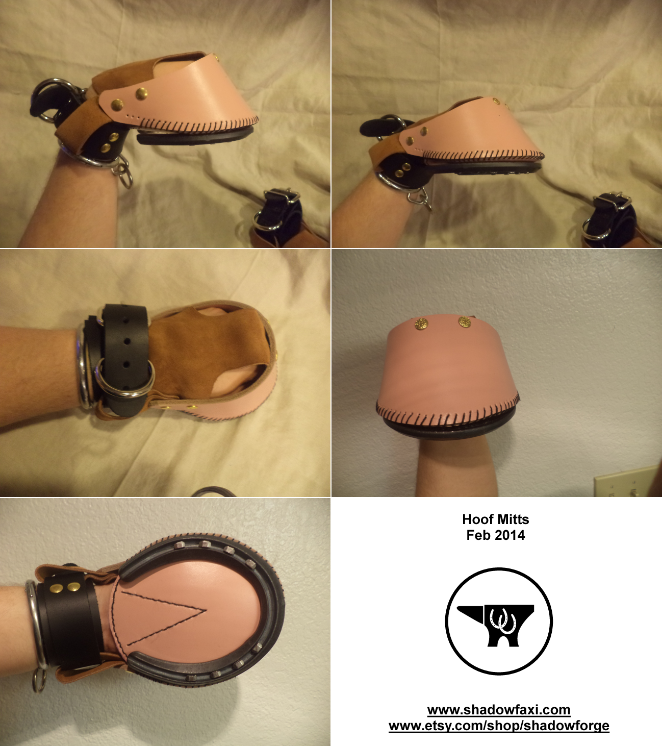 Hoof mitts are available on the web. There are a few latex hoof mitts out there (and i do love latex) but it seemsto be no good supply of leather pony mitts. Puppies have many options for paws, but ponies have to shoe themselves. my goal it to change that.